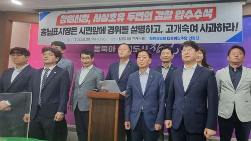 (창원=연합뉴스) 김선경 기자 = 경남 창원시의회 더불어민주당 의원단이 최근 홍남표 창원시장에 대한 검찰의 두 번째 압수수색이 단행된 것과 관련, 홍 시장이 대시민 사과에 나서야 한다고 촉구했다.