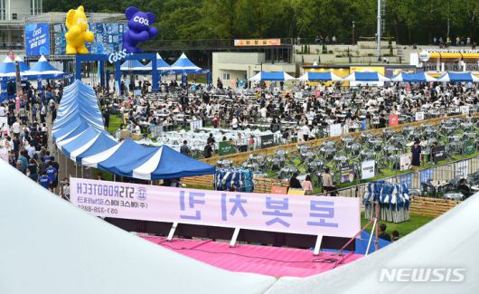 [대구=뉴시스] 이무열 기자 = 30일 오후 대구 달서구 두류야구장에 열린 '2023 대구 치맥 페스티벌'을 찾은 시민들이 시원한 맥주와 치킨을 먹으며 축제를 즐기고 있다. 2023.08.30. lmy@newsis.com