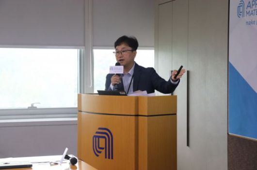 장대현 어플라이드 머티어리얼즈 코리아 메모리 식각 기술 총괄이 30일 성남시 분당 본사 사무실에서 발표를 하고 있다. / [사진제공=어플라이드 머티어리얼즈 코리아] |