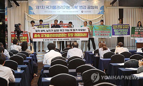 변경안 공청회는 이달 25일 진행될 예정이었으나 환경단체 연대체인 한국환경회의와 4대강 재자연화 시민위원회, 보 철거를 위한 금강·영산강 시민행동 등 환경단체가 공청회 중단과 변경안 철회를 요구하며 단상을 점거해 무산됐다.