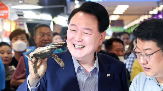 31일 윤 대통령은 노량진수산시장에서 우럭·꽃게·전어 등 국산 수산물을 구매하고 시장 상인을 격려했다고 이도운 대통령실 대변인이 브리핑을 통해 밝혔다.