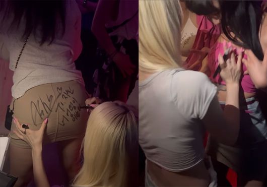 래퍼 애쉬비(본명 추윤정)가 팬들의 가슴과 엉덩이 등 신체 부위에 사인해 눈길을 끌었다.
