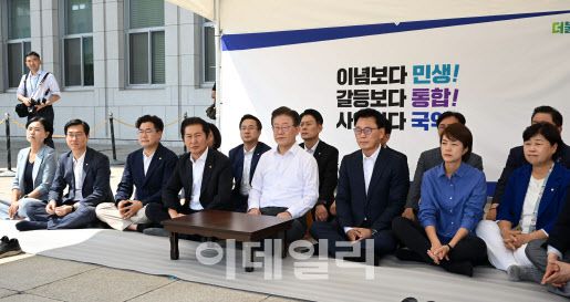 [이데일리 방인권 기자] 이재명 더불어민주당 대표가 31일 서울 여의도 국회 본청 앞에서 단식을 시작하고 있다.