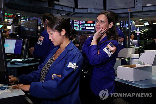 뉴욕증권거래소(NYSE)에서 트레이더들이 일하고 있다. 연합뉴스 자료 사진 |