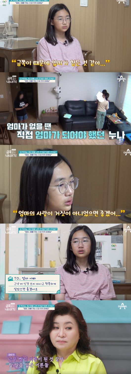 끝으로 누나는 "엄마, 아빠가 날 신경 쓰지 않고 행복하게 살았으면 좋겠다. 죄송하다"고 고백, 아이의 속내에 부모는 일제히 눈시울을 붉혔다. 동생에게는 "가끔식 너한테 화낼 때가 있지만 누나가 많이 사랑한다. 그리고 미안해"라고 했다.
