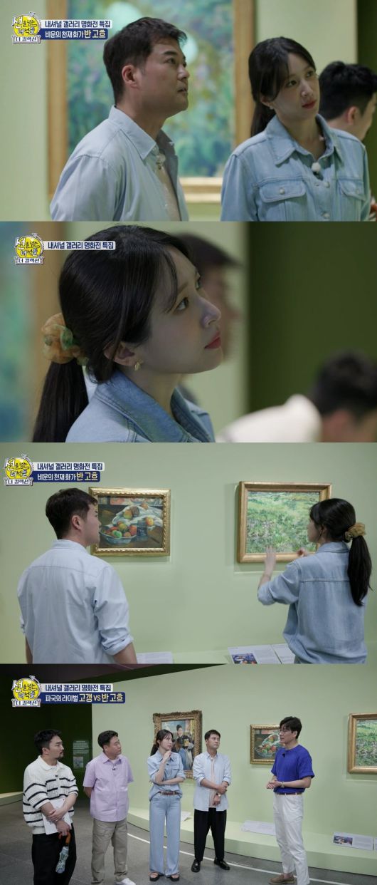 전현무와 하니는 고흐와 고갱의 그림을 감상하던 중 취향이 극명하게 갈리며 티격태격했다. 전시장에는 고흐와 고갱의 그림이 나란히 걸려 있었다. 전현무와 하니의 눈에 전혀 다른 방식으로 그림을 그린 두 화가의 특징을 포착했다. 고갱파 전현무와 고흐파 하니로 취향이 갈린 두 사람은 그림에서 MBTI로 이어지는 과몰입 토크를 펼쳐 웃음을 자아냈다.