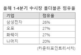 오포, 아너 등 중국 기업들은 신규 폴더블폰을 출시한다. 자국 시장을 시작으로 글로벌 시장에서도 삼성전자와 경쟁 구도를 형성하기 위해 노력하는 모습이다. 오포는 최근 파인드N3 플립 등 파인드N3 시리즈를, 아너는 매직V2를 공개했다. 특히 아너는 공개 행사에서 삼성전자를 수차례 언급하면서 무게·두께 우위를 강조했다.