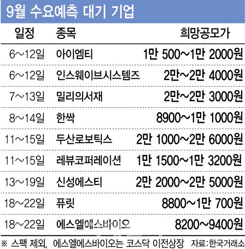 9월 공모주 시장은 투자자들의 관심도 남다를 것으로 예상되고 있다. IPO 최대어부터 투자자들의 관심을 끌 만한 성장산업에 속한 기업이 다수여서다.