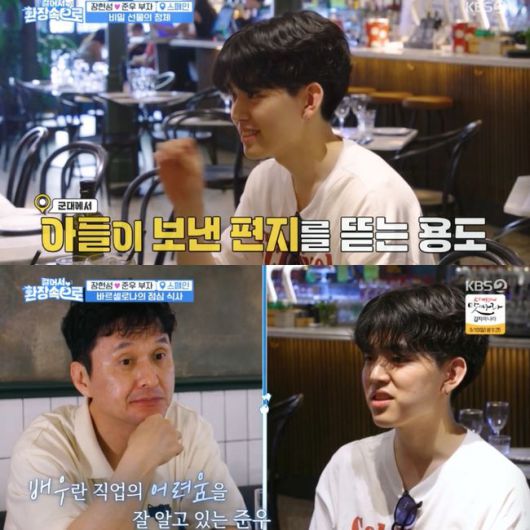 그런가 하면, 장현성은 장준우에게 자신과 같은 직업을 생각해 본 적 없는지 물었다. 장준우는 “아빠를 보면서? 있지. 있는데 생각보다 이 직업군이 반짝반짝 하지만 다가 아니라는 걸 알 수 있고”라며 솔직한 생각을 전했다. 이어 “그리고 실제로 고등학교 때 방송제라고 배우를 했었다. 거기서 선배들이 아빠랑 유전자 검사 해보라고 하더라. 아빠 아들 맞냐고 친자 맞냐고 왜 이렇게 연기를 못하냐고. 내가 연기한 영상을 보다가 1분 보고 바로 껐다. 못 보겠더라”라고 털어놔 폭소케 했다.