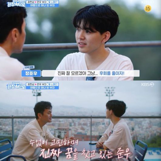 장준우는 구체적인 목표에 대해 “진짜 잘 모르겠다. 그냥 후회를 줄이자고 생각한다”라고 밝혔다. 그러자 장현성은 “훌륭한 생각이다”라며 “아빠도 사춘기 때부터 막연하게 예술가가 되고 싶다는 생각을 많이 했다. 글 쓰는 걸 좋아해서 세상을 바꾸는 시인이 되고 싶었다”라고 과거를 회상했다.