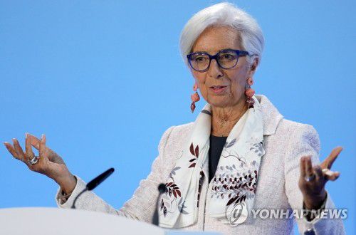 통화정책 이사회 뒤 기자회견 하는 유럽중앙은행 총재 |
