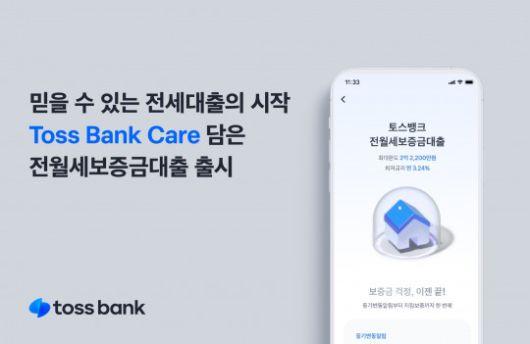 토스뱅크는 ‘토스뱅크 케어(Toss Bank Care)’를 도입한 전월세보증금대출을 출시한다고 5일 밝혔다. 토스뱅크 케어는 ▲전세지킴보증 ▲등기변동알림 ▲다자녀 특례 대출 등 총 3가지로 구성됐으며 일반·청년·다자녀특례로 구성된 토스뱅크 전월세보증금대출을 통해 고객들은 최대 2억2200만원까지 대출을 받을 수 있다. 최저 금리는 3.32%로 청년 전월세보증금대출의 최저 금리는 3.42% 수준이다.