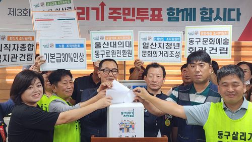 이외에 ▲ 돌봄기관 교사 확대 ▲ 울산대 의대 지역 환원 ▲ 봉수로·아산로 버스노선 확대 ▲ 동구문화예술회관 건립 ▲ 퇴직자 종합복지관 건립 ▲ 남목 청소년 문화휴식공간 조성 ▲ 일산지 청년 문화의 거리 조성 등 지역 요구안 7개도 제시됐다.