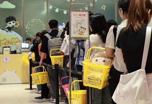 한 장에 1천∼1천500원 하는 스티커를 양손 가득 뭉치로 쥐고 계산대로 향하는 사람, 대형 인형으로 꽉 채운 장바구니를 양팔에 낀 사람들도 심심치 않게 찾아볼 수 있었다.