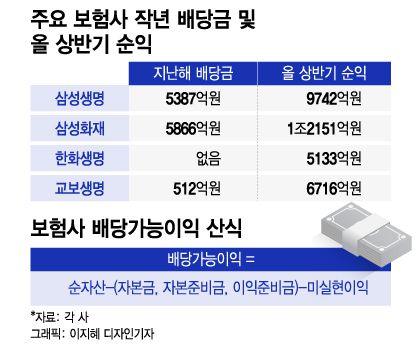 "상반기 순익 8조원" 5대 은행 맞먹은 보험사, 배당은 '제로' 우려