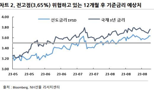 다만 금리 추가 인상 우려는 제한적일 것으로 평가했다. 윤 연구원은 “올해 한국 경제성장률이 1%대 초반에 머무를 것으로 예견되는 상황 속에서 물가와 환율에 대응하기 위해 금리를 추가적으로 인상하거나 긴축 기조를 내년 상반기까지 가져갈 경우 경제 하방 위험이 가중될 것이란 판단도 유입될 것이기에 단기물 가격 하락세는 제한될 것”이라고 내다봤다.