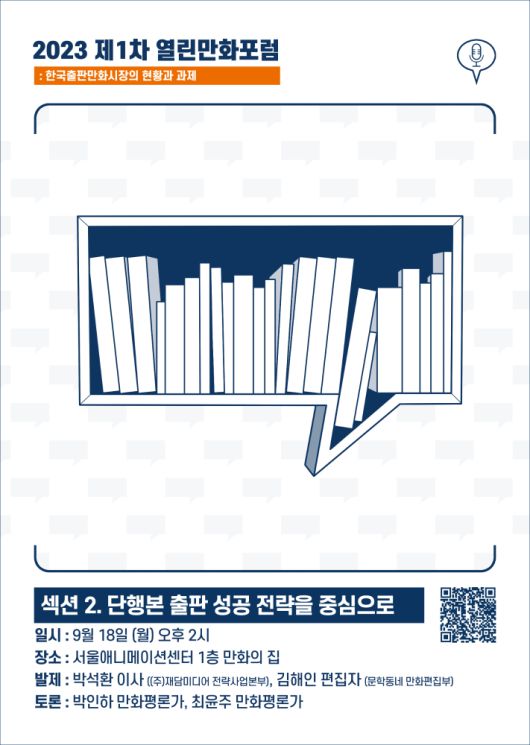 특히 이번 포럼은 현재 출판만화 현장에서 일하고 있는 전문가가 발제자로 나서 단행본 출판 성공 전략에 관한 다양한 인사이트를 제공한다.