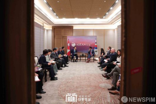 [서울=뉴스핌]윤석열 대통령이 6일(현지시간) 자카르타 컨벤션센터(JCC)에서 쥐스탱 트뤼도 캐나다 총리와 한-캐나다 정상회담을 하고 있다.[사진=대통령실] 2023.09.05 photo@newspim.com 저작권자(c) 글로벌리더의 지름길 종합뉴스통신사 뉴스핌(Newspim), 무단 전재-재배포 금지
