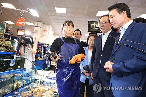 당 '우리바다지키기검증 태스크포스'(TF) 위원장인 성일종 의원과 TF 소속 안병길·이주환·한무경·홍석준 의원은 이날 조승환 해양수산부 장관, 노동진 수협중앙회장, 김성호 한국수산업경영인중앙연합회장과 함께 시장을 방문했다.