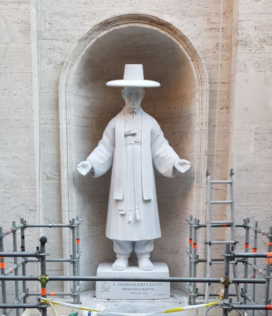 한국인 최초 가톨릭 사제인 성(聖) 김대건 안드레아(1821~1846) 신부의 조각상이 5일(현지 시각) 세계 가톨릭의 수도인 로마 바티칸 중심부에 설치됐다. 8000여 명에 달하는 가톨릭 성인 중 한국인을 넘어서 동아시아 성인의 상(像)이 바티칸에 들어서는 것 자체가 처음이다. 도시 전체가 하나의 예술품으로 불리는 바티칸 곳곳에는 성인들의 조각상 1000여 점이 세워져 있다.