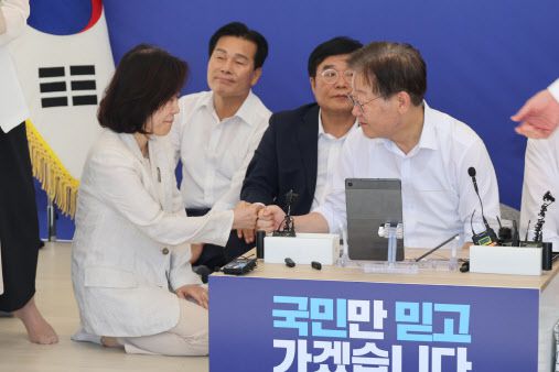 [이데일리 김유성 이수빈 기자] 이재명 더불어민주당 대표의 단식이 일주일을 넘어선 가운데 김은경 전 민주당 혁신위원장이 단식 현장을 방문했다. 김 전 위원장은 이 대표를 위로하며 “어둠은 빛을 이기지 못한다”고 말했다. ‘사즉생(죽고자 하면 산다)’이란 단어를 남기기도 했다.