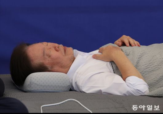 이부자리는 당 최고위원회의가 끝난 뒤 준비됐다. 하지만 이 대표는 이어지는 손님들의 방문에 오래 누워있지 못했다. 정의당 심상정 의원이 방문하자 다시 일어나서 맞이했다. 이날도 이 대표는 소금과 물을 마시면서 단식을 이어 나갔다.