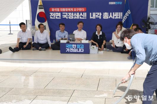 한편, 강한 햇볕으로 이날도 서울의 최고기온이 32도 가까이 오를 전망이다. 관계자들은 열기를 막기 위해 바닥에 물을 뿌리기도 했다. 하지만 열기로 인해 바닥은 금새 말라붙었고, 천막 안은 더욱 뜨겁다. 이 대표는 내일 수원지검에 쌍방울 대북 송금과 관련해 조사받으러 출석할 예정이다.