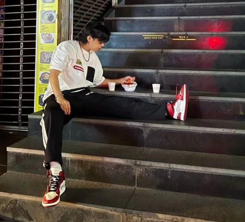 10일 임영웅은 자신의 SNS에 곰인형 이모티콘과 함께 한 장의 사진을 공개했다. 사진 속 임영웅은 계단에 앉아 편안한 복장으로 음식을 먹고 있다. 내츄럴한 그의 모습조차 시선을 사로잡는다.