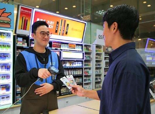 GS25에서 고객이 외국인 전용 교통카드 '한복춘식로카M'을 구매하고 있다. [사진=GS25] |