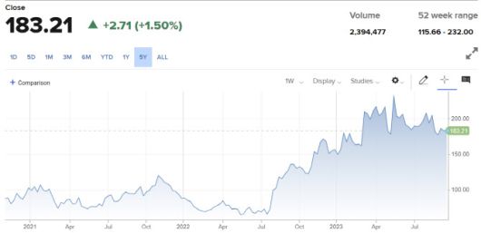 8일(현지시간) 미국의 경제전문매체 CNBC와 배런스 등에 따르면 도이치뱅크의 코린 블랜자드 애널리스트는 퍼스트솔라에 대해 적정주가 대비 매력적인 진입점에 왔다며 투자의견을 종전 ‘보유’에서 ‘매수’로, 목표주가를 220달러에서 235달러로 각각 상향 조정했다. 이날 퍼스트솔라 주가는 전일대비 1.5% 올라 183.21달러에 마감했다. 코린 블랜자드 분석대로라면 앞으로 28% 더 오를 수 있다는 얘기다.