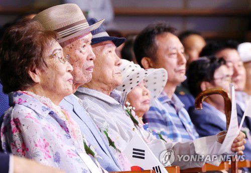 광복절 한 자리에 모인 징용 피해자들 |