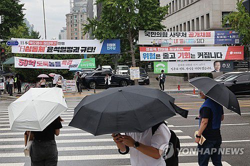 (부산=연합뉴스) 오수희 기자 = 서울과 광주 등에 이어 부산에서도 도심에 난립한 정당 현수막을 규제하는 조례 개정이 추진된다.