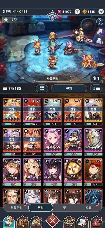 영웅들과 몬스터들이 한 데 모여 벌이는 전투 장면은 단조롭지만 ‘보는 재미’가 적지 않다. 화려한 스킬 효과가 부족한 점은 아쉬웠지만, 영웅들의 움직임에서 느껴지는 묘한 율동감과 리듬감이 보는 재미를 살렸다. 레이스를 하듯 줄어드는 보스의 체력바와 타임어택바를 지켜보는 데서 오는 은근한 긴장감도 묘미였다. 이 때문인지 오프라인 모드로 방치해 두는 것이 영웅 성장 면에서 이로운데도, 시간이 빌 때마다 틈틈이 게임에 손이 갔다. 수집한 영웅들은 전투 과정에선 아기자기한 SD(2~3등신) 캐릭터로 표현되지만, ‘영웅관리’ 탭에선 세븐나이츠 특유의 수려한 일러스트를 만나볼 수 있어 원작팬이 만족감을 느낄 요소도 다분했다.