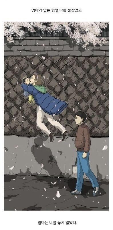 “엄마가 있는 힘껏 나를 붙잡았고 엄마는 나를 놓지 않았다. 아빠가 엄마를 붙잡았다고 했다.”