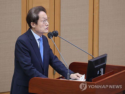 서울시의회 본회의 단상 선 조희연 교육감 |