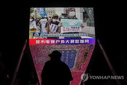 중국 베이징 스크린에 나오는 오염수 방류 반대 집회 보도 |