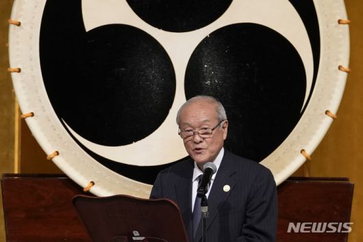 [니가타=AP/뉴시스]사진은 스즈키 순이치 일본 재무상이 지난 5월 니가타현 도키멧세에서 열린 G7 재무장관·중앙은행 총재 회의 환영 리셉션에서 연설하는 모습. |