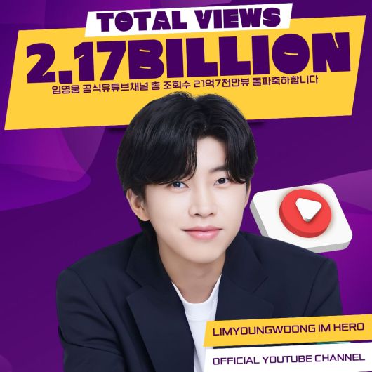 13일 기준 임영웅의 공식 유튜브 채널 '임영웅'은 총조회수 21억 7천만뷰를 돌파했다.