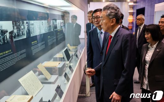 (서울=뉴스1) 김도우 기자 = 하토야마 유키오 전 일본 총리가 14일 서울 마포구 연세대학교 김대중도서관에서 열린 '김대중 대통령 탄생 100주년 기념 명사초청 강연회'에 참석 전 전시관을 둘러보고 있다. 2023.9.14/뉴스1pizza@news1.krCopyright ⓒ 뉴스1. All rights reserved. 무단 전재 및 재배포 금지.