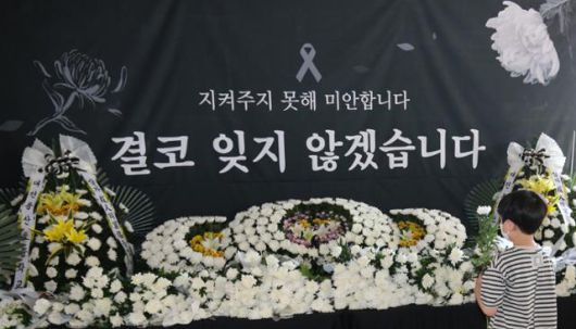 학부모로부터 악성 민원에 시달리다 극단적 선택을 한 것으로 알려진 대전 초등학교 교사의 발인이 거행된 9일 숨진 교사가 근무했던 학교에 마련된 분향소에 추모객들이 추모하고 있다. 뉴스1 |