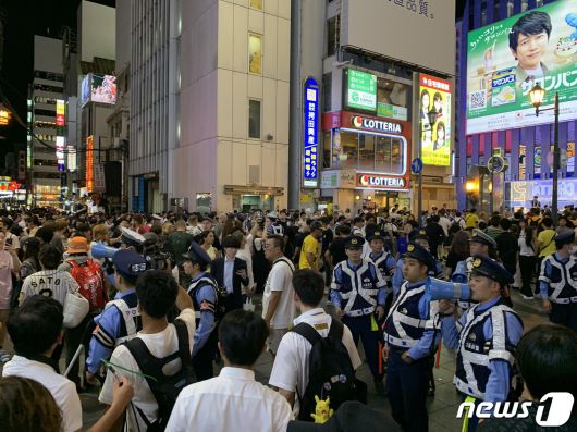 이날 미나미도톤보리 강을 가로지르는 에비스다리 주변에는 수많은 인파가 모여들었다.