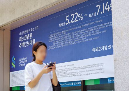 서울 한 시중은행의 대출 안내문 앞을 시민이 지나가고 있다. [연합] |