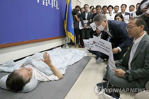 단식 중단 촉구하는 민주당 의원들 |
