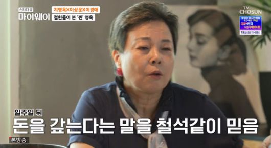 17일 방송된 TV CHOSUN '스타다큐 마이웨이'에서는 '쓰리랑 부부'에서 '방 빼' 라는 유행어를 탄생시키며 사랑받았던 코미디언 지영옥이 인생의 아픔을 이야기했다.