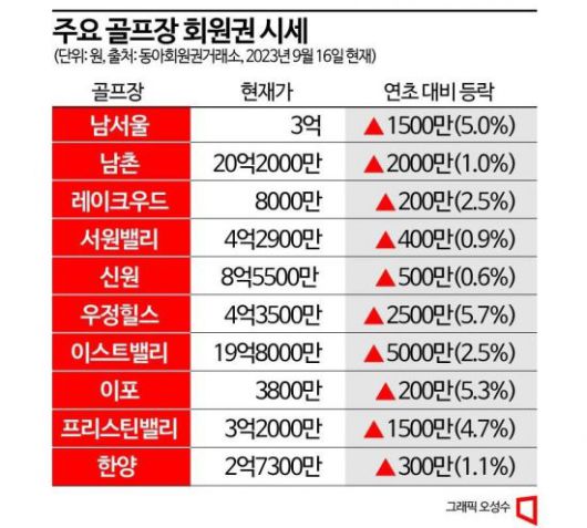 그래픽 뉴스 : 골프장 회원권 평균 2억4821만원