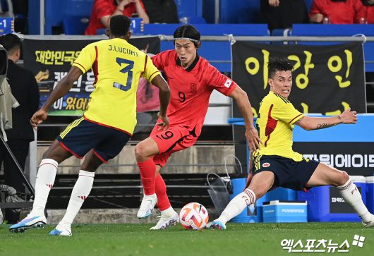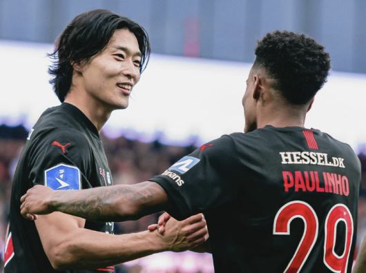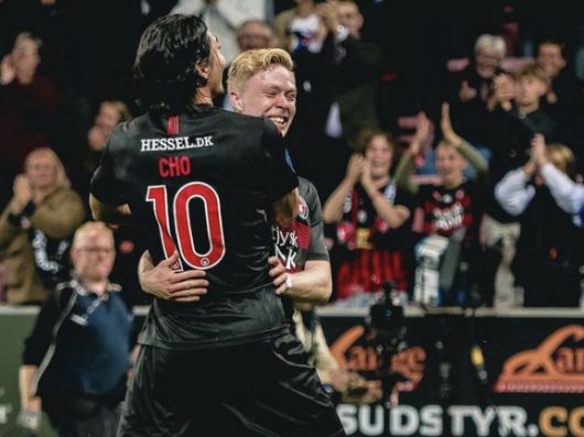 지난해 카타르 월드컵에서 가나전 헤더 멀티골을 터트려 한국 축구사 첫 월드컵 한 경기 두 골 주인공이 된 조규성인 덴마크 진출 첫 골을 머리로 받아넣는 등 체격이 큰 덴마크 선수들 사이를 헤집고 수준급 포스트 플레이를 펼치고 있다.