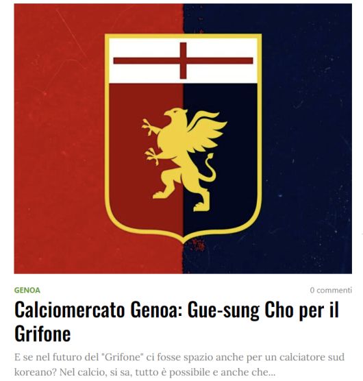 피오렌티나와 볼로냐, 제노아 등 이탈리아 북부 밀라노, 토리노와 중부 로마 사이에 위치한 도시 연고팀의 소식을 주로 전하는 '칼치오라인'은 조규성이 제노아와 연결되고 있음을 알렸다.