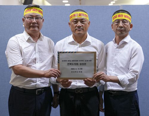 (전주=연합뉴스) 김동철 기자 = 전북도의회 새만금 대응단이 19일 새만금 세계스카우트잼버리와 관련해 전북도를 감사 중인 감사원에 공정한 감사를 요청했다.