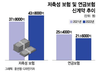 실제로 2021년말 기준 저축성보험 신계약 금액은 37조8016억원에서 지난해 말 기준 43조8231억원으로 늘었지만, 연금보험 신계약 금액은 같은 기간 25조4248억원에서 21조9589억원으로 크게 감소했다.