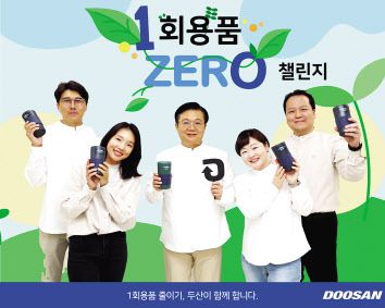 ㈜두산은 문홍성(가운데) 사장이 ‘1회용품 제로(Zero) 챌린지’에 참여했다고 20일 밝혔다. 문홍성 사장은 정철동 LG이노텍 사장의 지목을 받아 이번 챌린지에 참여했다. 다음 참여자로는 강석훈 KDB산업은행 회장을 지목했다. 챌린지에 동참하는 차원에서 ‘㈜두산 임직원 릴레이 챌린지’도 21일부터 10월 31일까지 진행하기로 했다. |